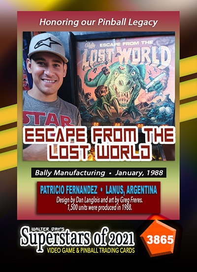 A subset of the Superstars of 2021, Our Pinball Legacy series of trading cards celebrates the 90th anniversary of the birth of coin-operated pinball (1931-2021). To honor this tremendous legacy, we invited more than 400 pinball aficionados to pose with their favorite pinball game for a trading card. And, on the back of the card, they wrote a 150-200 word biography, telling the story of their love for pinball while including in the text historical facts about the machine.