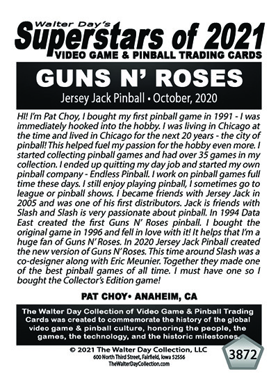 A subset of the Superstars of 2021, Our Pinball Legacy series of trading cards celebrates the 90th anniversary of the birth of coin-operated pinball (1931-2021). To honor this tremendous legacy, we invited more than 400 pinball aficionados to pose with their favorite pinball game for a trading card. And, on the back of the card, they wrote a 150-200 word biography, telling the story of their love for pinball while including in the text historical facts about the machine.