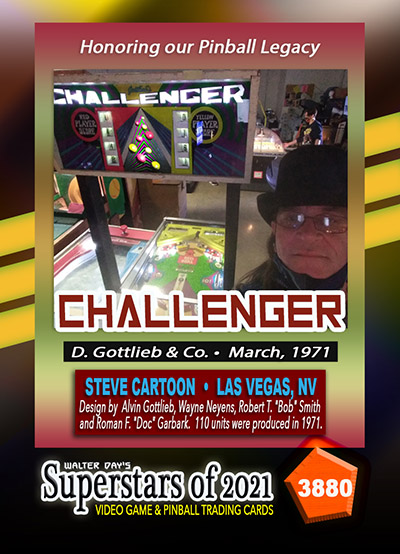 A subset of the Superstars of 2021, Our Pinball Legacy series of trading cards celebrates the 90th anniversary of the birth of coin-operated pinball (1931-2021). To honor this tremendous legacy, we invited more than 400 pinball aficianados to pose with their favorite pinball game for a trading card. And, on the back of the card, they wrote a 150-200 word biography, telling the story of their love for pinball while including in the text historical facts about the machine.