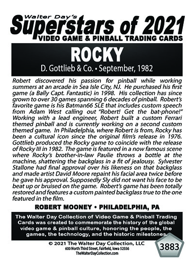 A subset of the Superstars of 2021, Our Pinball Legacy series of trading cards celebrates the 90th anniversary of the birth of coin-operated pinball (1931-2021). To honor this tremendous legacy, we invited more than 400 pinball aficionados to pose with their favorite pinball game for a trading card. And, on the back of the card, they wrote a 150-200 word biography, telling the story of their love for pinball while including in the text historical facts about the machine.
