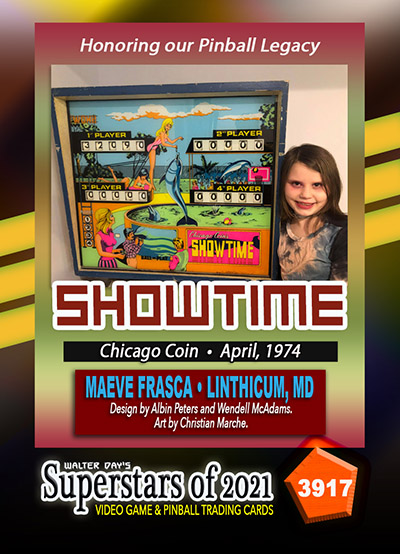 A subset of the Superstars of 2021, Our Pinball Legacy series of trading cards celebrates the 90th anniversary of the birth of coin-operated pinball (1931-2021). To honor this tremendous legacy, we invited more than 400 pinball aficionados to pose with their favorite pinball game for a trading card. And, on the back of the card, they wrote a 150-200 word biography, telling the story of their love for pinball while including in the text historical facts about the machine.