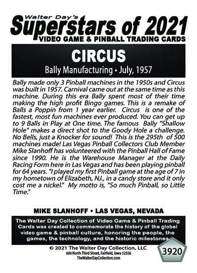 A subset of the Superstars of 2021, Our Pinball Legacy series of trading cards celebrates the 90th anniversary of the birth of coin-operated pinball (1931-2021). To honor this tremendous legacy, we invited more than 400 pinball aficionados to pose with their favorite pinball game for a trading card. And, on the back of the card, they wrote a 150-200 word biography, telling the story of their love for pinball while including in the text historical facts about the machine.
