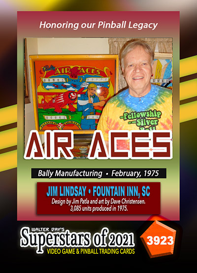 A subset of the Superstars of 2021, Our Pinball Legacy series of trading cards celebrates the 90th anniversary of the birth of coin-operated pinball (1931-2021). To honor this tremendous legacy, we invited more than 400 pinball aficionados to pose with their favorite pinball game for a trading card. And, on the back of the card, they wrote a 150-200 word biography, telling the story of their love for pinball while including in the text historical facts about the machine.