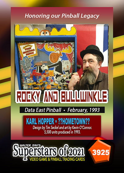 A subset of the Superstars of 2021, Our Pinball Legacy series of trading cards celebrates the 90th anniversary of the birth of coin-operated pinball (1931-2021). To honor this tremendous legacy, we invited more than 400 pinball aficionados to pose with their favorite pinball game for a trading card. And, on the back of the card, they wrote a 150-200 word biography, telling the story of their love for pinball while including in the text historical facts about the machine.