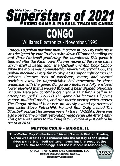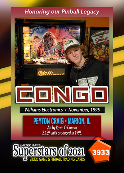 A subset of the Superstars of 2021, Our Pinball Legacy series of trading cards celebrates the 90th anniversary of the birth of coin-operated pinball (1931-2021). To honor this tremendous legacy, we invited more than 400 pinball aficionados to pose with their favorite pinball game for a trading card. And, on the back of the card, they wrote a 150-200 word biography, telling the story of their love for pinball while including in the text historical facts about the machine.