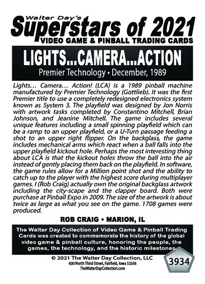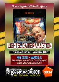 A subset of the Superstars of 2021, Our Pinball Legacy series of trading cards celebrates the 90th anniversary of the birth of coin-operated pinball (1931-2021). To honor this tremendous legacy, we invited more than 400 pinball aficionados to pose with their favorite pinball game for a trading card. And, on the back of the card, they wrote a 150-200 word biography, telling the story of their love for pinball while including in the text historical facts about the machine.