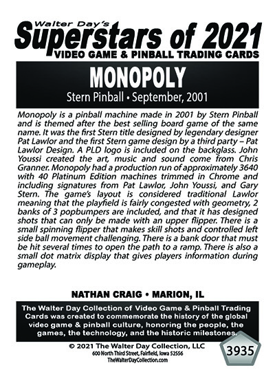A subset of the Superstars of 2021, Our Pinball Legacy series of trading cards celebrates the 90th anniversary of the birth of coin-operated pinball (1931-2021). To honor this tremendous legacy, we invited more than 400 pinball aficionados to pose with their favorite pinball game for a trading card. And, on the back of the card, they wrote a 150-200 word biography, telling the story of their love for pinball while including in the text historical facts about the machine.