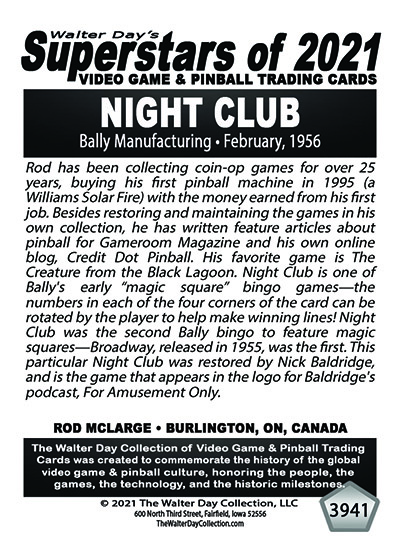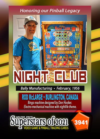 A subset of the Superstars of 2021, Our Pinball Legacy series of trading cards celebrates the 90th anniversary of the birth of coin-operated pinball (1931-2021). To honor this tremendous legacy, we invited more than 400 pinball aficionados to pose with their favorite pinball game for a trading card. And, on the back of the card, they wrote a 150-200 word biography, telling the story of their love for pinball while including in the text historical facts about the machine.