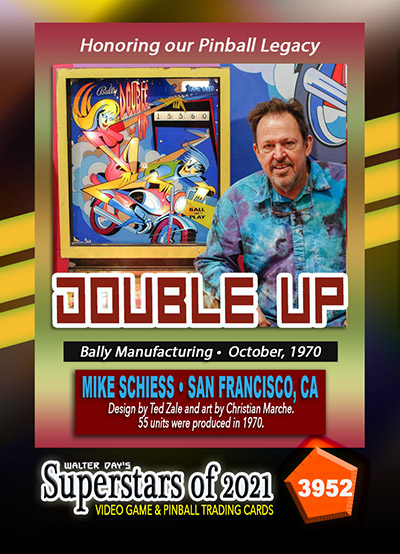 A subset of the Superstars of 2021, Our Pinball Legacy series of trading cards celebrates the 90th anniversary of the birth of coin-operated pinball (1931-2021). To honor this tremendous legacy, we invited more than 400 pinball aficionados to pose with their favorite pinball game for a trading card. And, on the back of the card, they wrote a 150-200 word biography, telling the story of their love for pinball while including in the text historical facts about the machine.