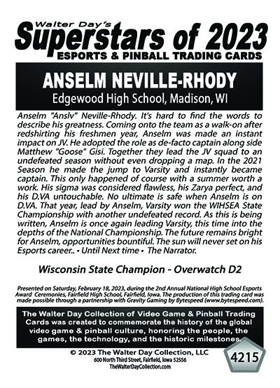4215 - Anselm Neville Rhody - Edgewood High School - NATIONAL ESPORTS AWARDS CEREMONIES
