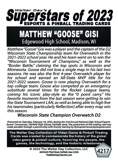 4217 - Matthew "Goose" Gisi - Edgewood High School - NATIONAL ESPORTS AWARDS CEREMONIES