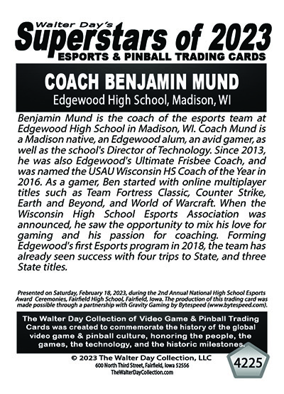 4225 - Coach Benjamin Mund - Edgewood High School - NATIONAL ESPORTS AWARDS CEREMONIES