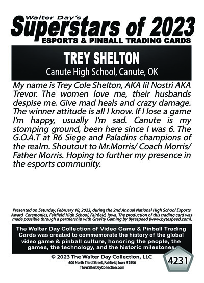 4231 - Trey Shelton - Canute High School - NATIONAL ESPORTS AWARDS CEREMONIES