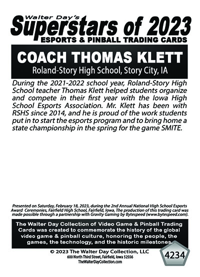 4234 - Coach Thomas Klett - Roland-Story High School - NATIONAL ESPORTS AWARDS CEREMONIES