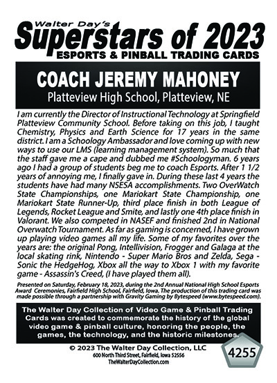 4255 - Coach Jeremy Mahoney - Platteview High School - NATIONAL ESPORTS AWARDS CEREMONIES