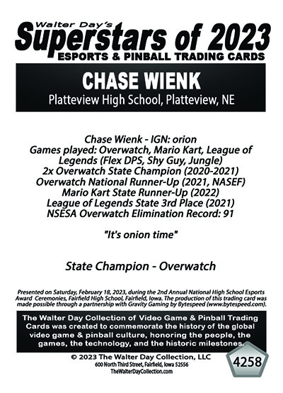 4258 - Chase Wienk - Platteview High School - NATIONAL ESPORTS AWARDS CEREMONIES