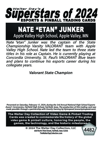 4482 - Nate Junker - Apple Valley High School Esports - NATIONAL ESPORTS AWARDS CEREMONIES