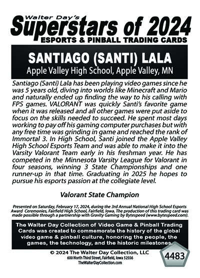 4483 - Santiago (Santi) Lala - Apple Valley High School Esports - NATIONAL ESPORTS AWARDS CEREMONIES