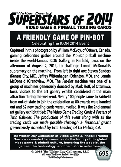 The Lonnie McDonald Pin•Bot card #695 is part of the LONNIE McDONALD JOUST HISTORY SERIES of cards sponsored by Lonnie McDonald, of Kansas City, MO.