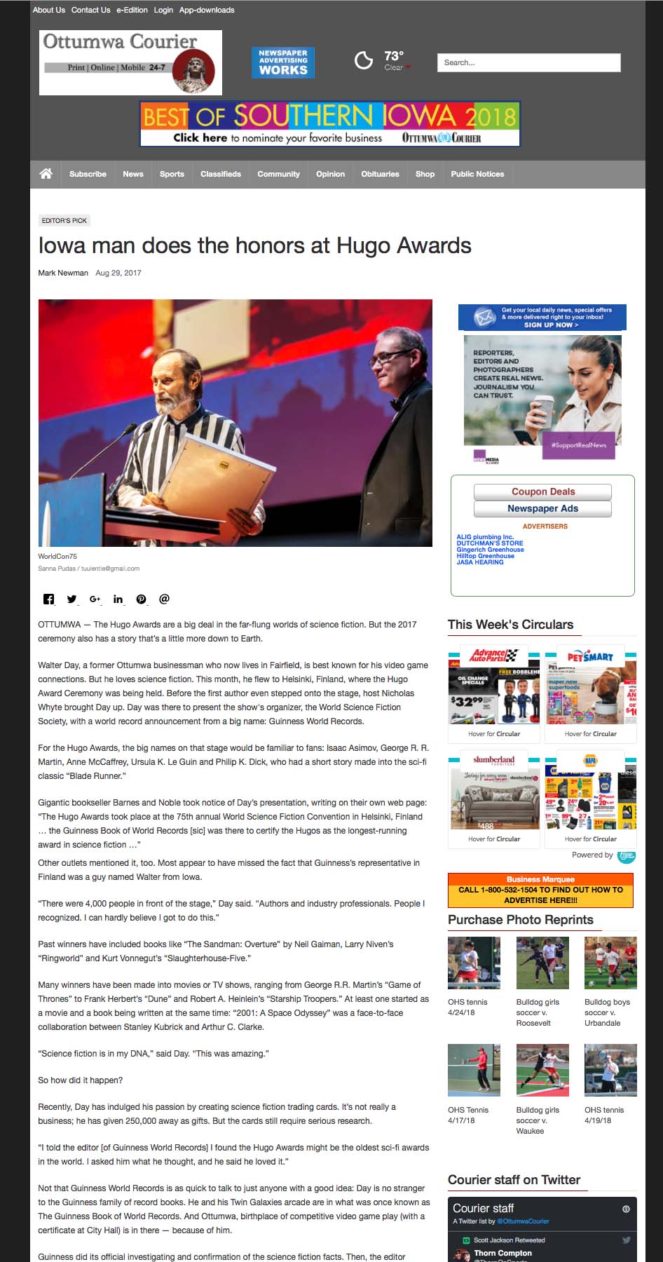 Iowa man does the honors at Hugo Awards