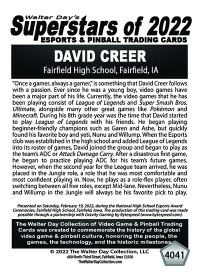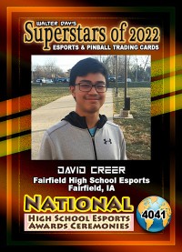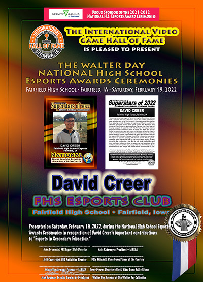 This Award and Trading Card was presented on Saturday, February 19, 2022, during the 1st Annual WALTER DAY NATIONAL HIGH SCHOOL ESPORTS AWARDS CEREMONIES, held at Fairfield High School, Fairfield, Iowa.